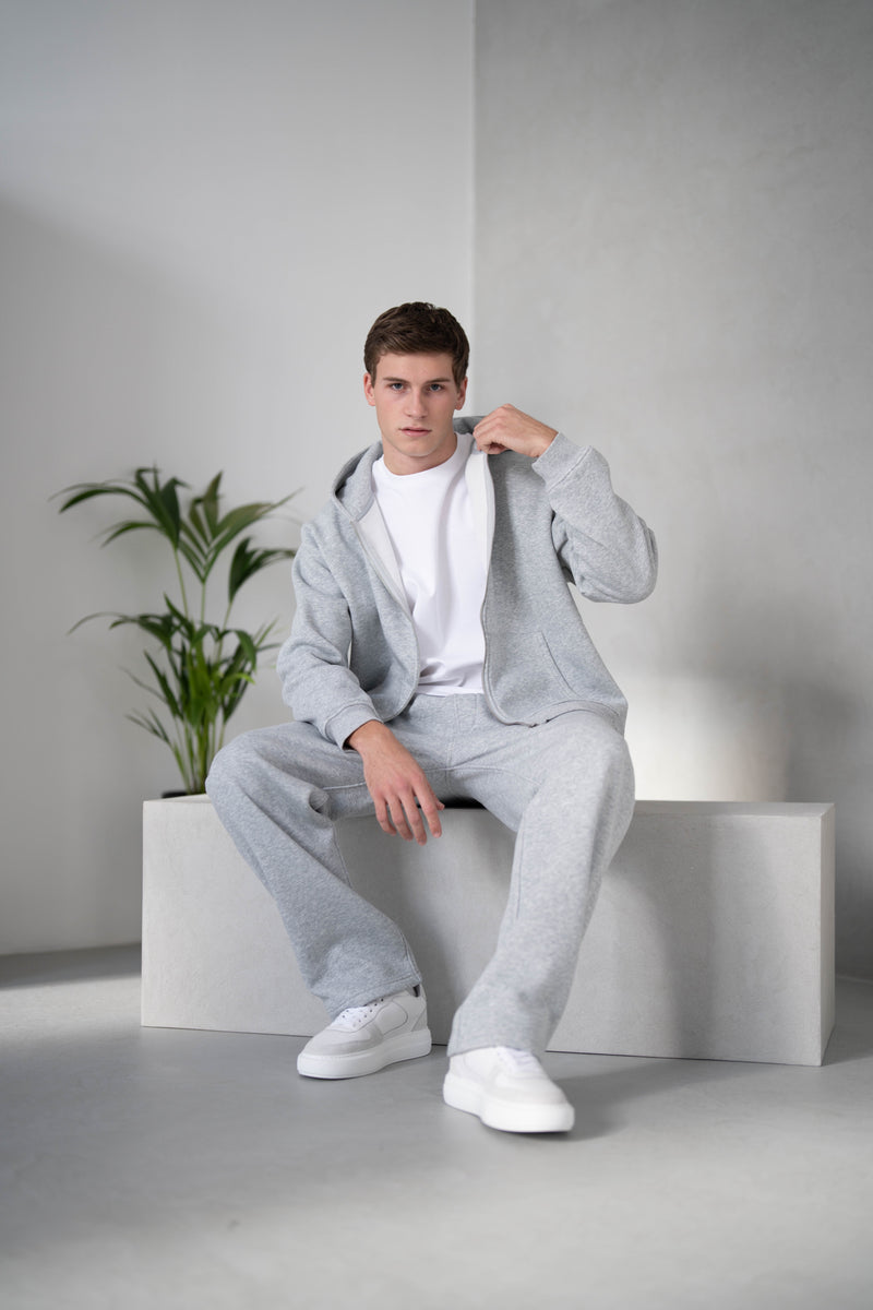 Our signature Hoodie & Sweatpants are worn and styled with our Atelier Blanc T-shirt in White. Both items are available in Grey Marl & Black.